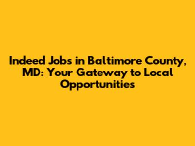 Are you on the hunt for Indeed jobs in Baltimore County, MD? You've landed in the right spot! Baltimore County is a vibrant hub with diverse industries, offering a wide array of employment opportunities. Whether you're a seasoned professional or just starting your career, understanding the local job market and how to navigate it on Indeed can significantly boost your chances of landing your dream job.