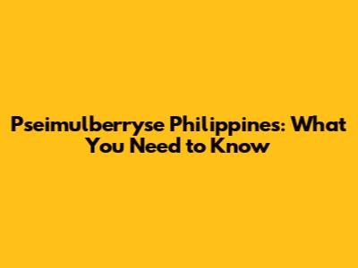 Pseimulberryse Philippines: What You Need To Know