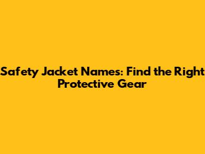 Safety Jacket Names: Find The Right Protective Gear